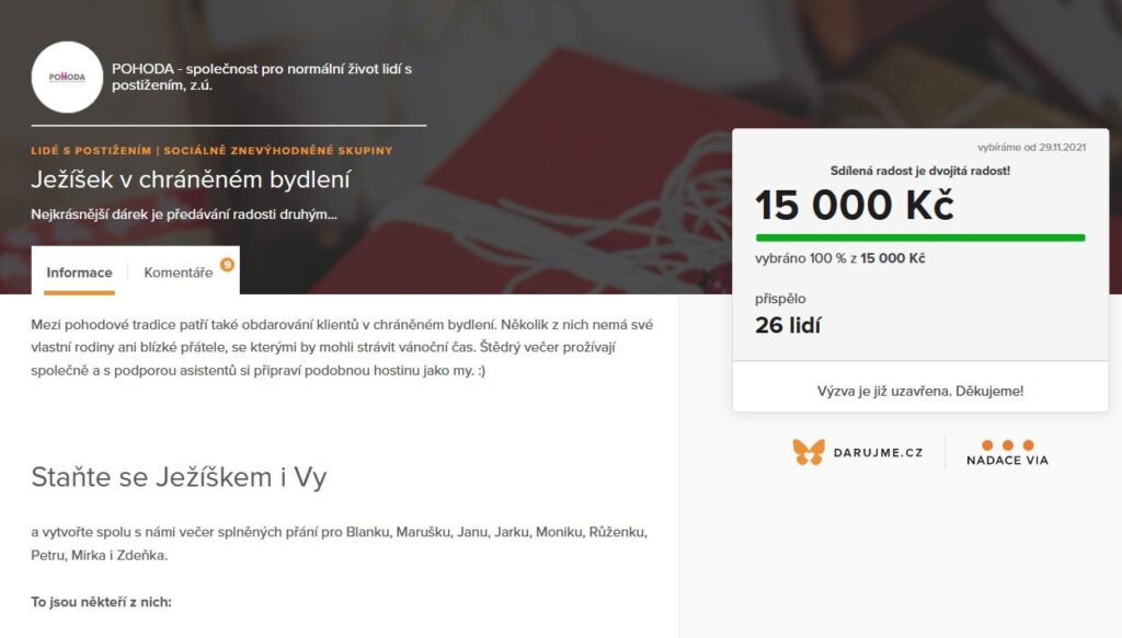 Autodrom jede aneb klienti denního stacionáře na Matějské Obrovský úspěch sbírky pro Ukrajinu! Všem moc děkujeme Pomáhejte s námi válečným uprchlíkům na Ukrajině Speciální valentýnská nabídka právě teď na našem e-shopu! Hledáte nové zážitky? Staňte se dobrovolníkem! Malá vánoční vzpomínka Beach Help Cup pomáhá POHODĚ, POHODA zase vám Vyplujte do nového roku s novými zážitky: staňte se dobrovolníkem! Ježíšek díky vám přiletí i do chráněného bydlení Lampionový průvod a dudák aneb zahájení adventu Ve Smečkách Zahájení adventu Ve Smečkách 25.11. 2021 POHODA v obležení dýní « Previous 1 … 10 11 12 13 14 … 23 Next »